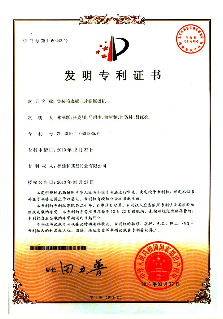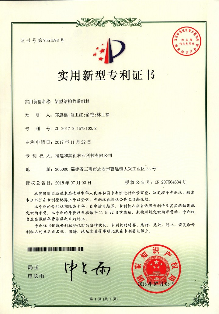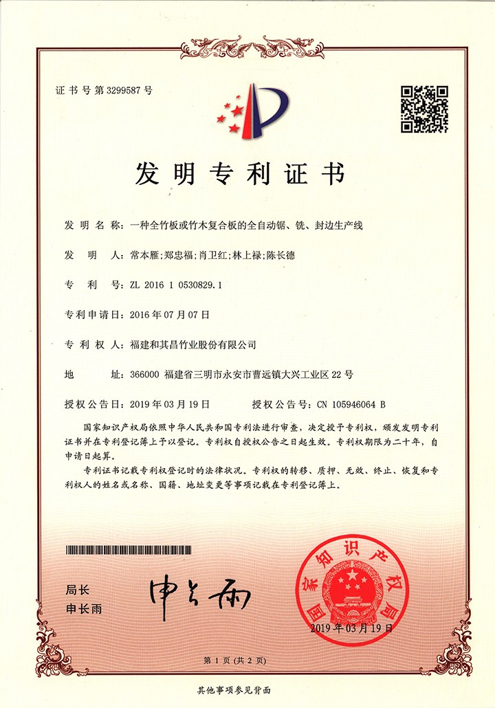 公司占地面積329畝,旗下有7家全資子公司,擁有業內先進的竹板材熱壓機及配套生產線,并與國際竹藤中心、中國林科院、福建農林大學等科研院建立產、學、研合作關系。現已擁有專利技術55項,其中發明專利13項。30年的行業深耕,和其昌品牌已進入全球核心供應鏈,享譽海內外眾多市場,合作客戶有全球頭部品牌馬士基、TRITON、TEX、FLORENS、HMM、長榮、陽明、萬海、UES、SEACO、廈門航空、金牌櫥柜、金龍客車、福田客車、中通客車、中南建筑、中建三局等,通過了國際質量管理體系認證、ISO9001國際質量管理體系認證等資質認證。